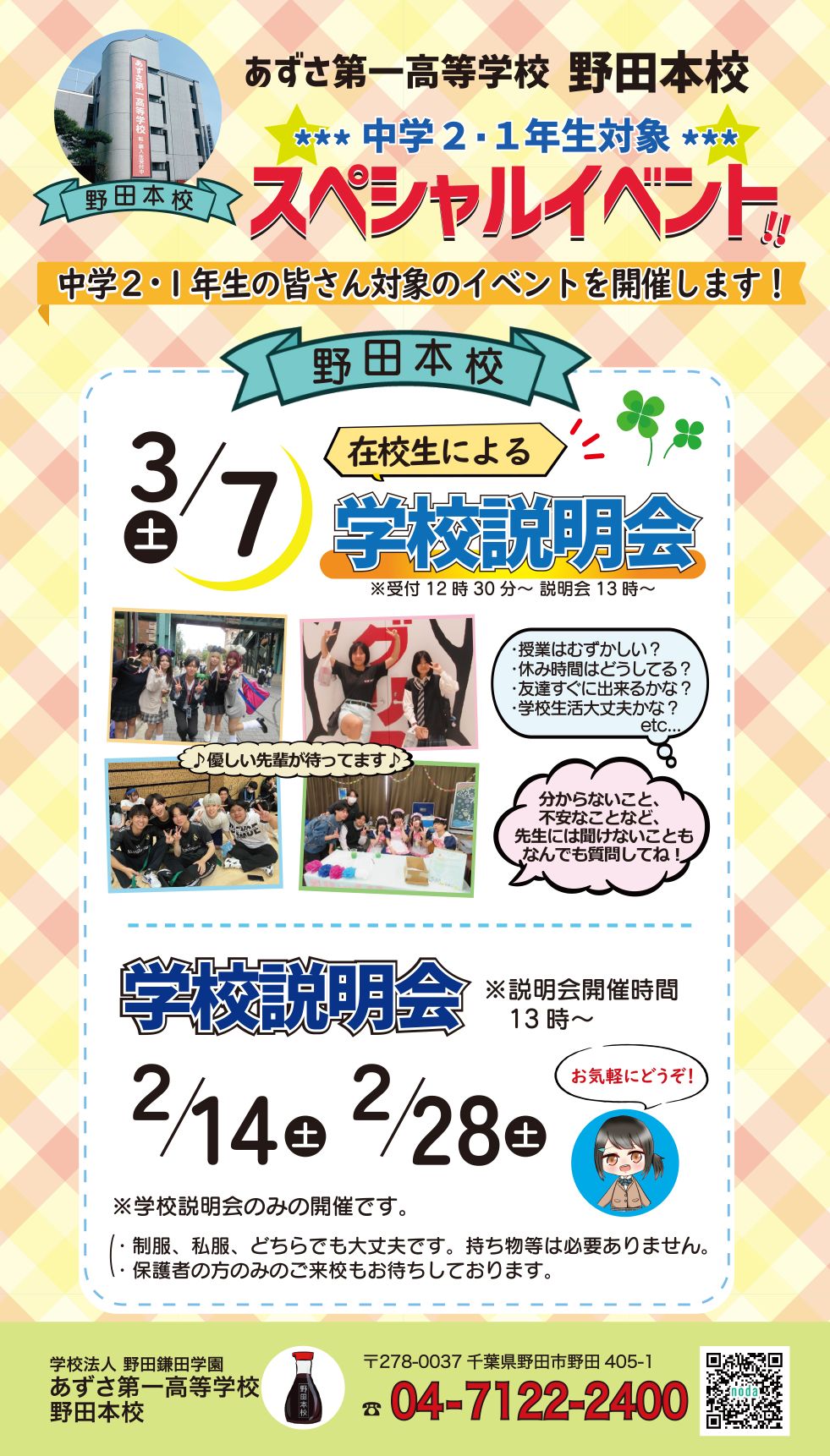 自分のペースで学びたい、自分の夢を実現したいと考えているみなさん、野田本校で一緒に学びませんか。ご来校をお待ちしております。