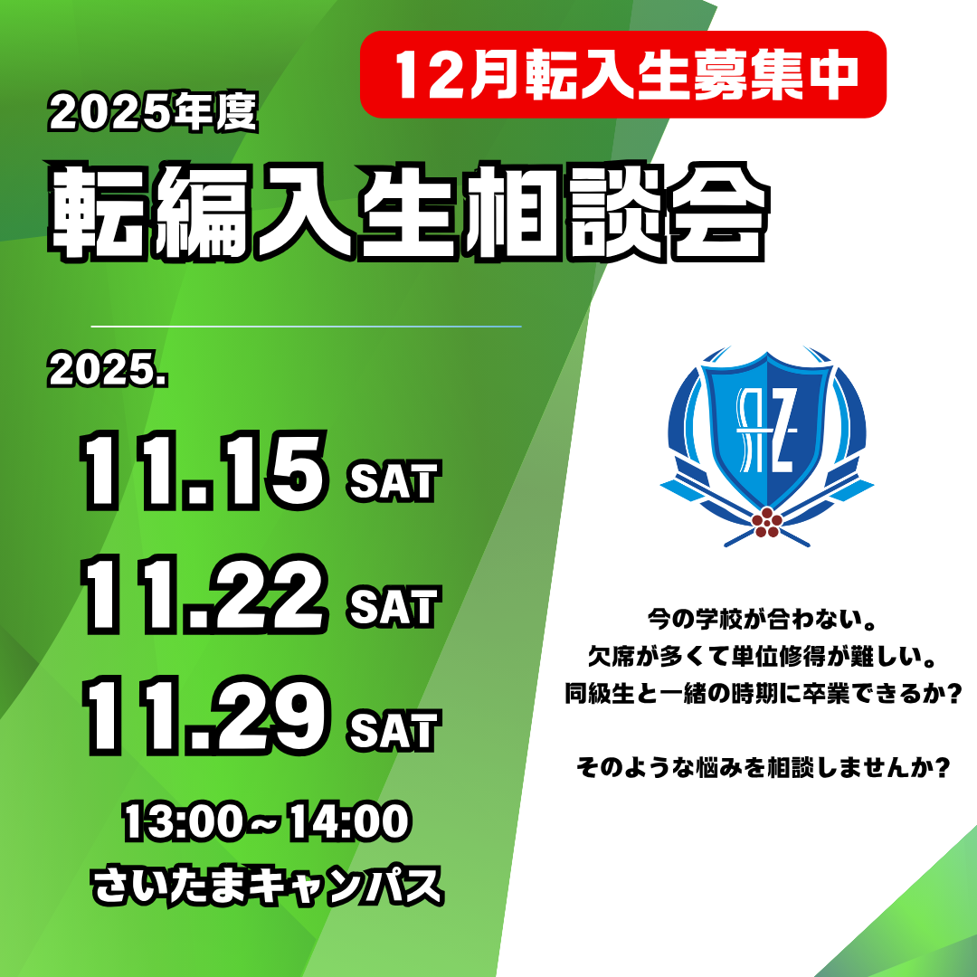 ~渋谷キャンパス 新入生・転編入生 学校説明会 11月・12月~