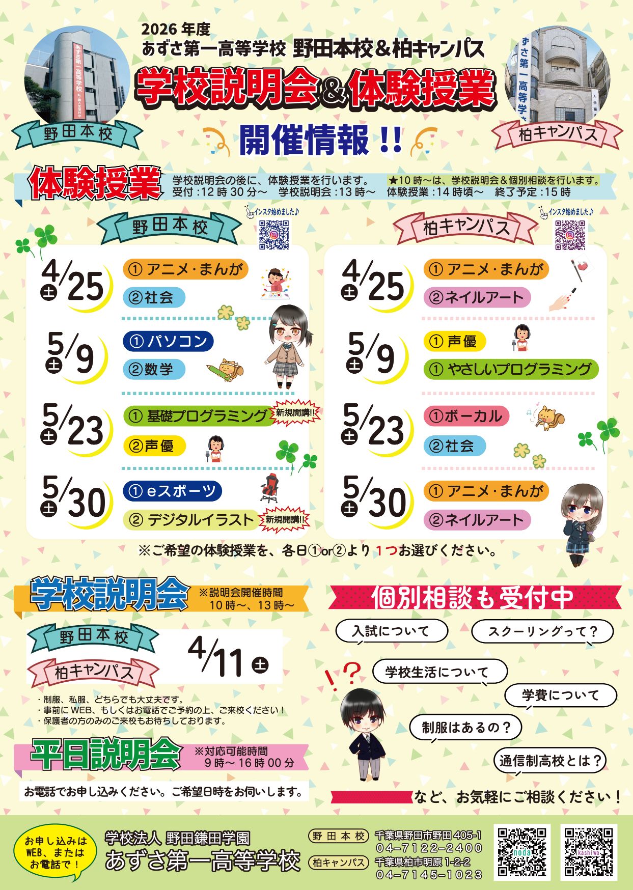 2025年度 柏キャンパス 学校説明会&体験授業