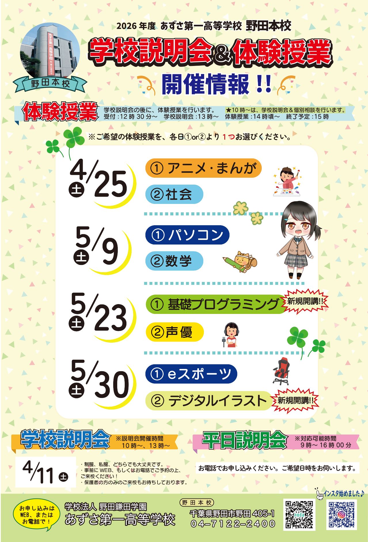 ~ 2025年度の学校説明会&体験授業&イベントのご案内です ~