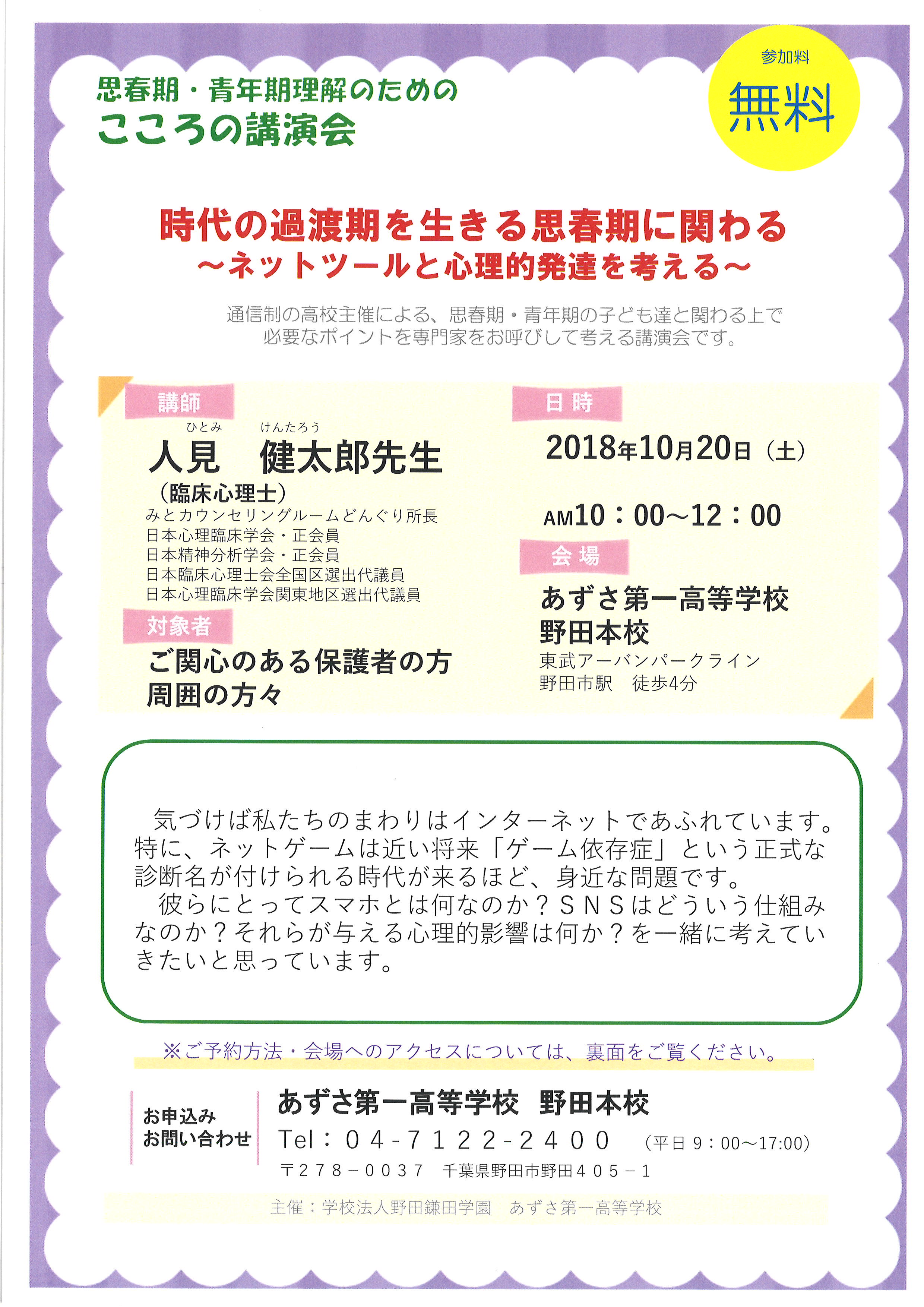 「こころの講演会」の開催