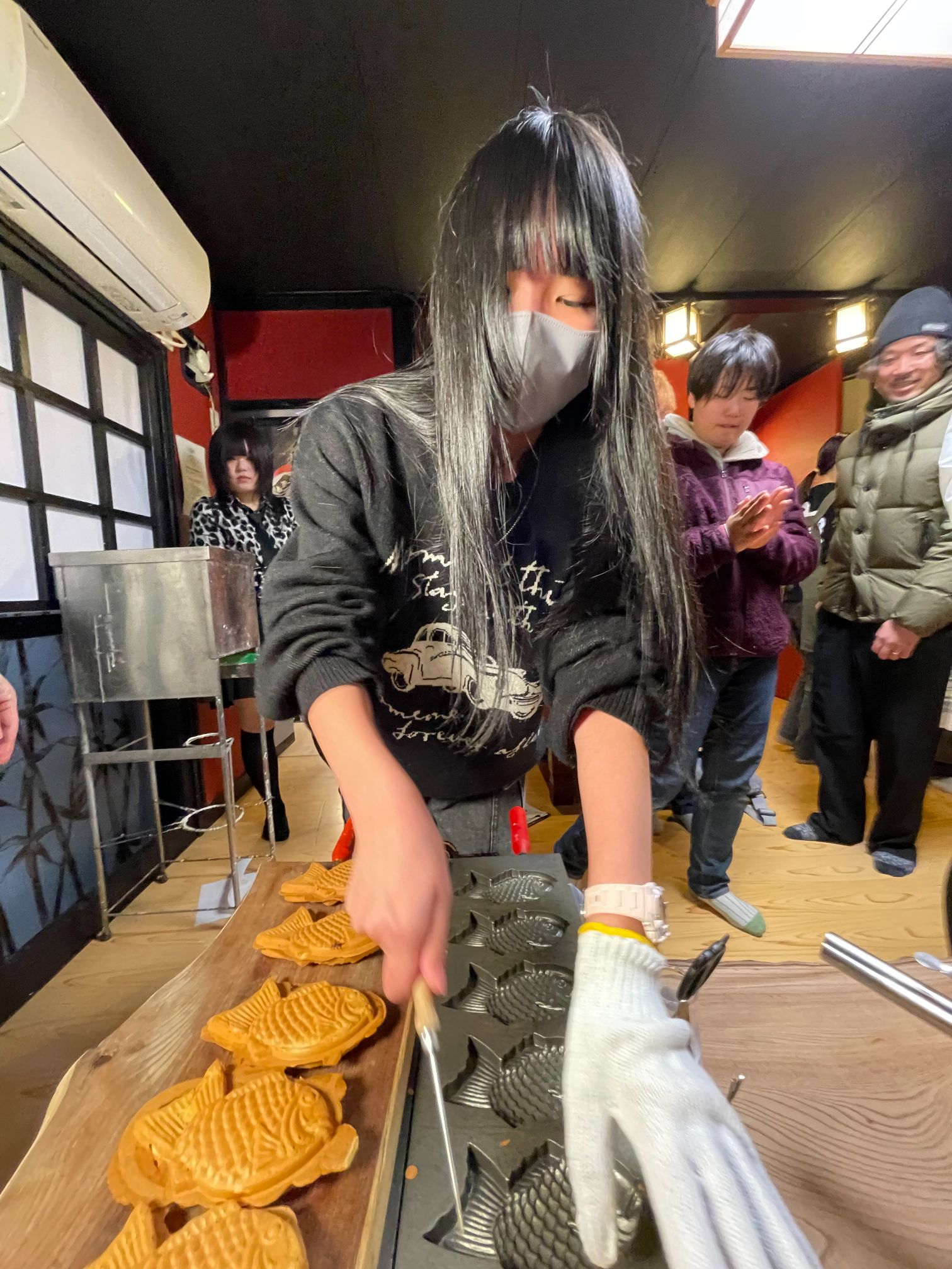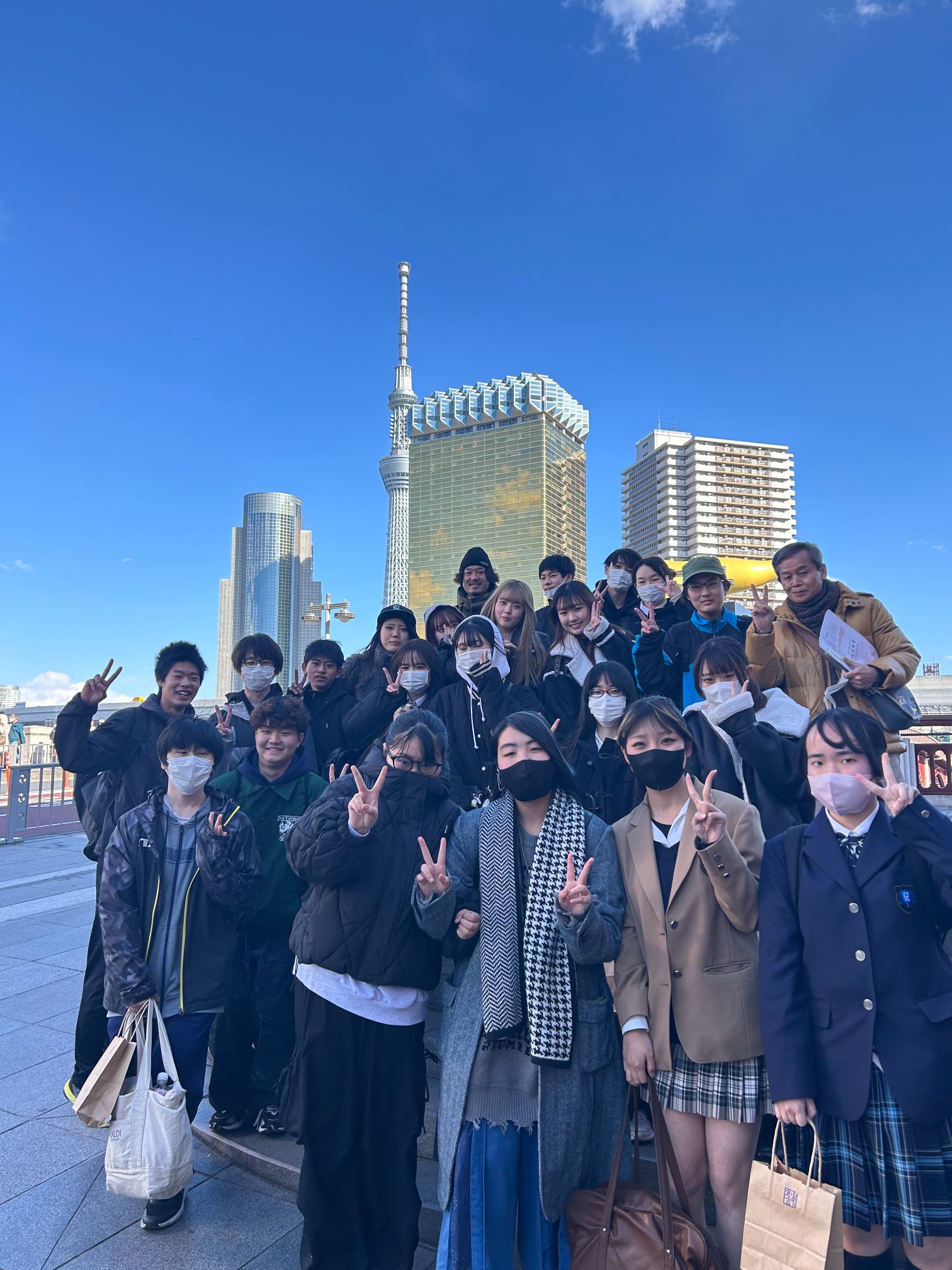 東京スカイツリーの展望台、浅草で自由行動、江戸切子体験、たい焼きづくり体験。